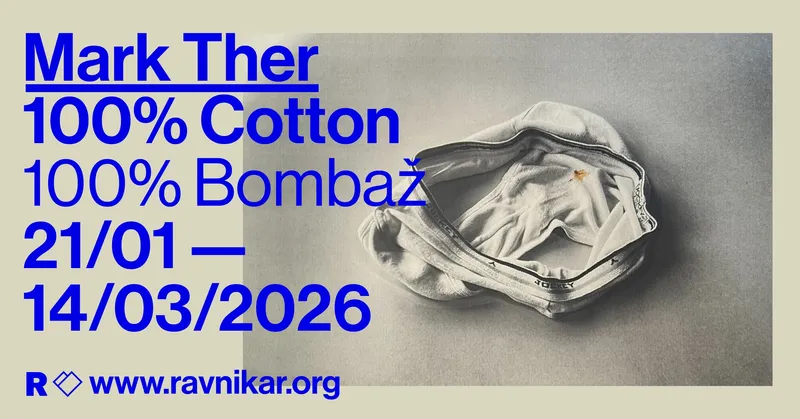 Mark Ther: 100% Bombažsamostojna razstavaLjubljanaGalerija Ravnikar 21.1.2026–14.3.2026ravnikar.orgMinulo Mark Ther: 100% Bombaž / samostojna razstava21.1.2026–14.3.2026LjubljanaGalerija Ravnikar 21.1.2026 ob 18:00Mark Ther: 100% Bombaž otvoritev