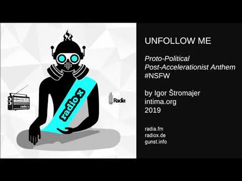 UNFOLLOW MEProto-Political Post-Accelerationist Anthemby Igor Štromajerradio x, FM 91.8 MHz Stereo, Frankfurt am Mainradiator x / GUNSTradio / Live On Air / radia.fmThursday, 31 January ...