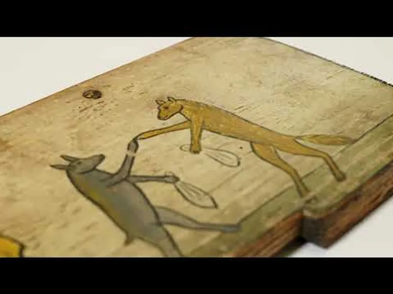 Predstavitev upodobitev lisice v Loškem muzeju Škofja Loka:Tina Dobrajc, Kjer so divje reči, akril in oljni pastel na platnu, 2013Babjekov Gašper, Lisica brije moža, druga prinaša krono, poslikana ...