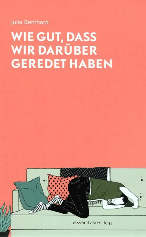Avant-verlag, Berlin, 2019 Na naslovnici v nežni barvi lososa vidimo zabaven prizor – mlado žensko v nerodni pozi na kavču. Glavo skuša vtakniti v temno špranjo med sedalom in naslonjalom. ...