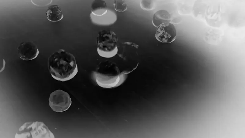 Video ustvarja vstop v fiktivno resničnost, kjer se predmeti razstapljajo v bežne svetlobne podobe - mehke, pomnožene, lebdeče oblike, ki plavajo v breztežnem (ukrivljenem) prostoru. (Vir: Uršula ...