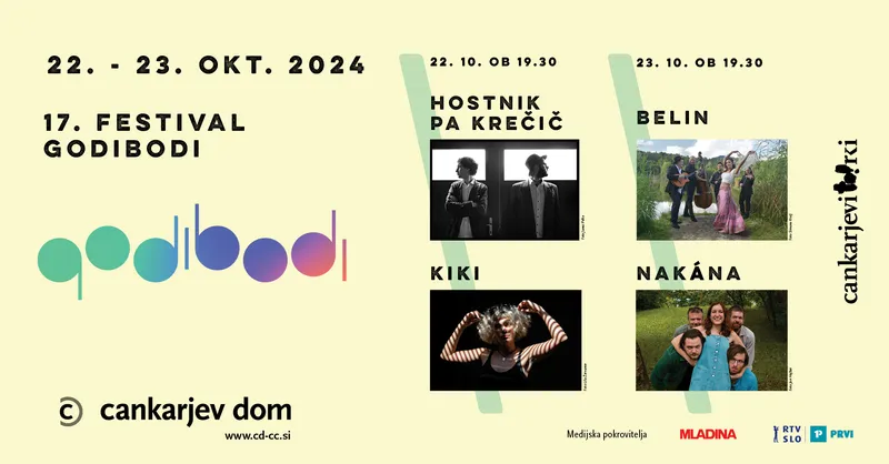 22. okt.19. 30 Hostnik pa Krečič 21. 00 KiKi 23. okt.19.30 Belin21.00 Nakána Trajanje posameznega koncerta: 50 minut VSTOPNICE NA SPLETNI STRANI CANKARJEVEGA DOMA__ Hostnik pa KrečičKoncert ob ...