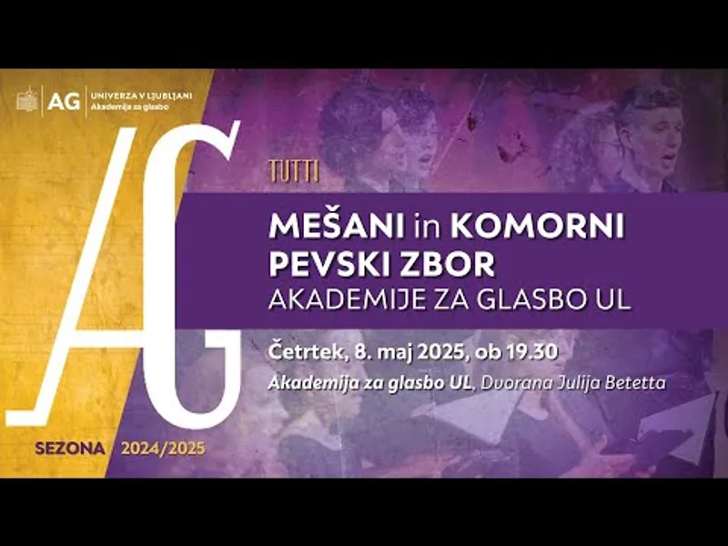 Koncertni cikel Solo e da camera:MEŠANI in KOMORNI PEVSKI ZBOR AKADEMIJE ZA GLASBO ULČetrtek, 8. maj 2025Akademija za glasbo, Dvorana Julija BetettaMEŠANI ZBOR UL AGDirigentka: asist. Alenka ...