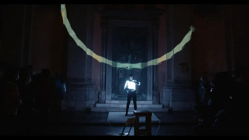 Kvintesenca je avdio-vizualni performans, ki združuje intermedijsko prakso Boštjana Čadeža in performativno telo Tatiane Kocmur. Telo performerke je pokrito z LED-lučkami, ki se odzovejo na njeno ...