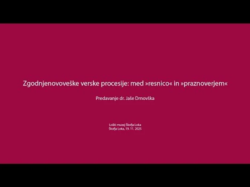 Na predavanju je dr. Jaša Drnovšek osvetlil najpomembnejše vzroke za množičnost procesij v katoliški Evropi v obdobju med 16. in 18. stoletjem, pojasnil je njihovo vlogo v procesu protireformacije ...