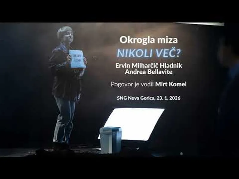 Okrogla miza Nikoli več? Mirt Komel, Ervin Hladnik Milharčič in Andrea BellaviteSNG Nova Gorica, 23. 1. 2026Okrogla miza Nikoli več? je bila spremljevalni program predstave Boško in Admira ...